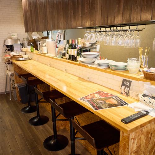 店内に配されたカウンター席は、お一人様でのご利用はもちろん、デートや記念日など、大切な方とのお食事にも最適なお席です◎シェフが料理をする様子を眺められる特等席で、特別なシーンを演出いたします♪親密な雰囲気の中で、美味しい料理とともにお二人の時間をお楽しみください。少人数でのサク飲みにもおすすめです。